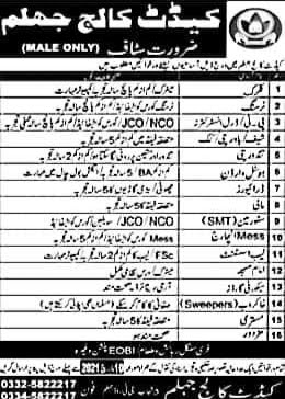 Latest Jobs in Cadet College Jhelum-Fresh Jobs 2021-Apply Online: