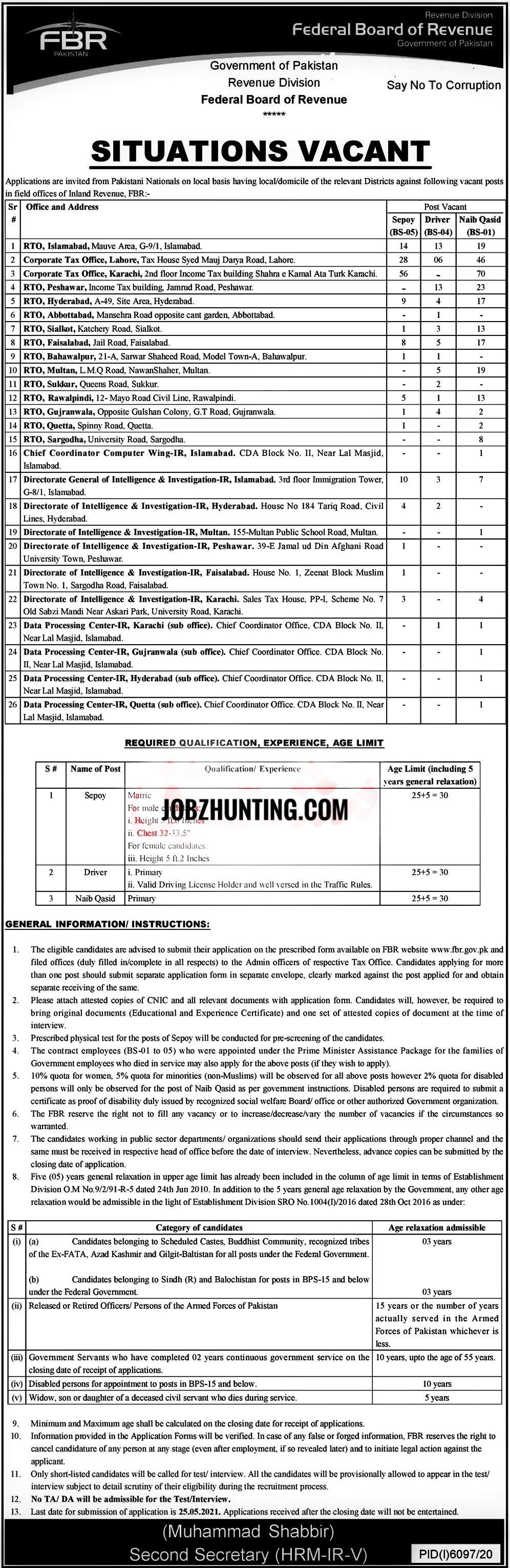 Federal Board Of Revenue Jobs 2021 | Latest FBR jobs