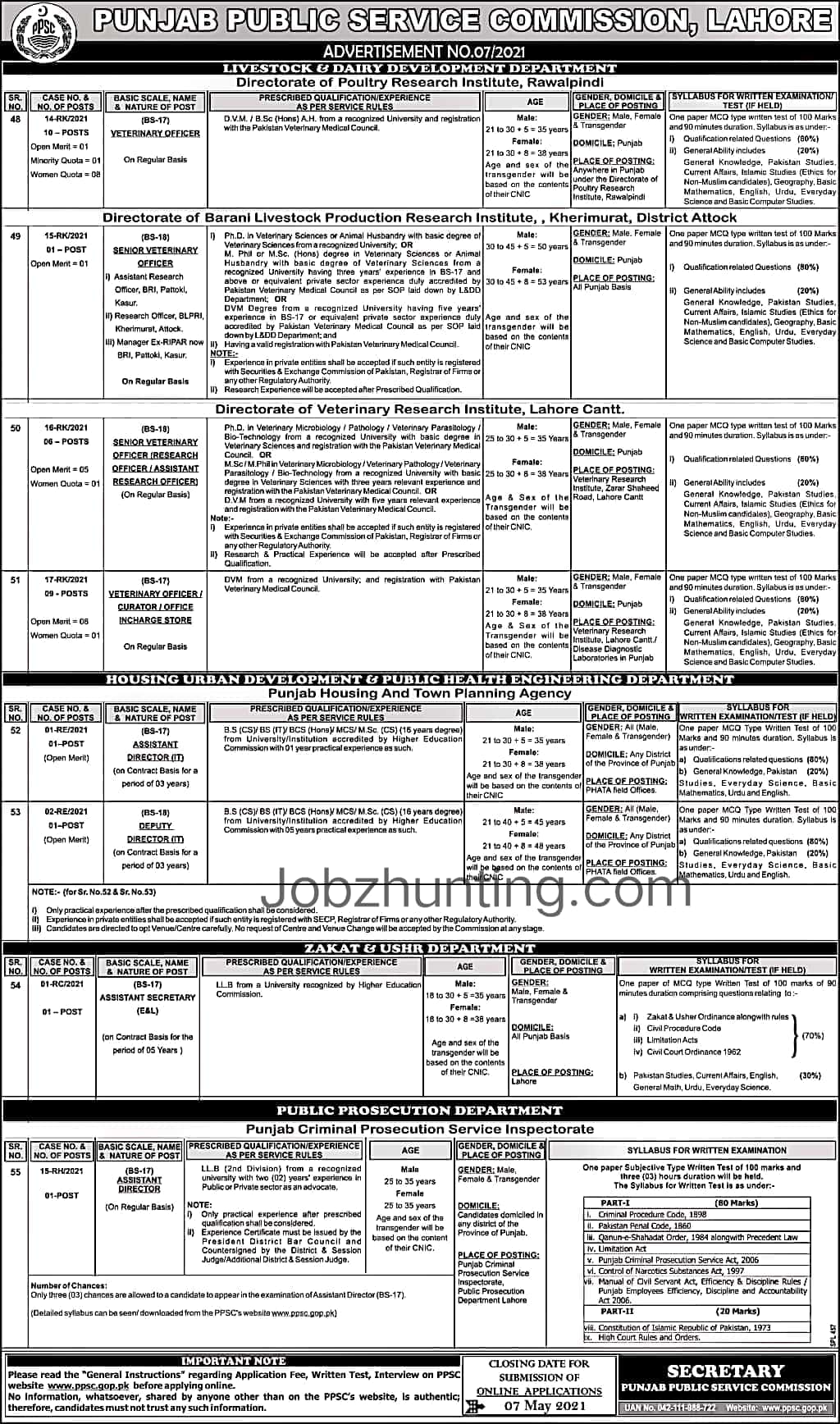 # 07 announced by Punjab Public Service Commission. PPSC is searching for